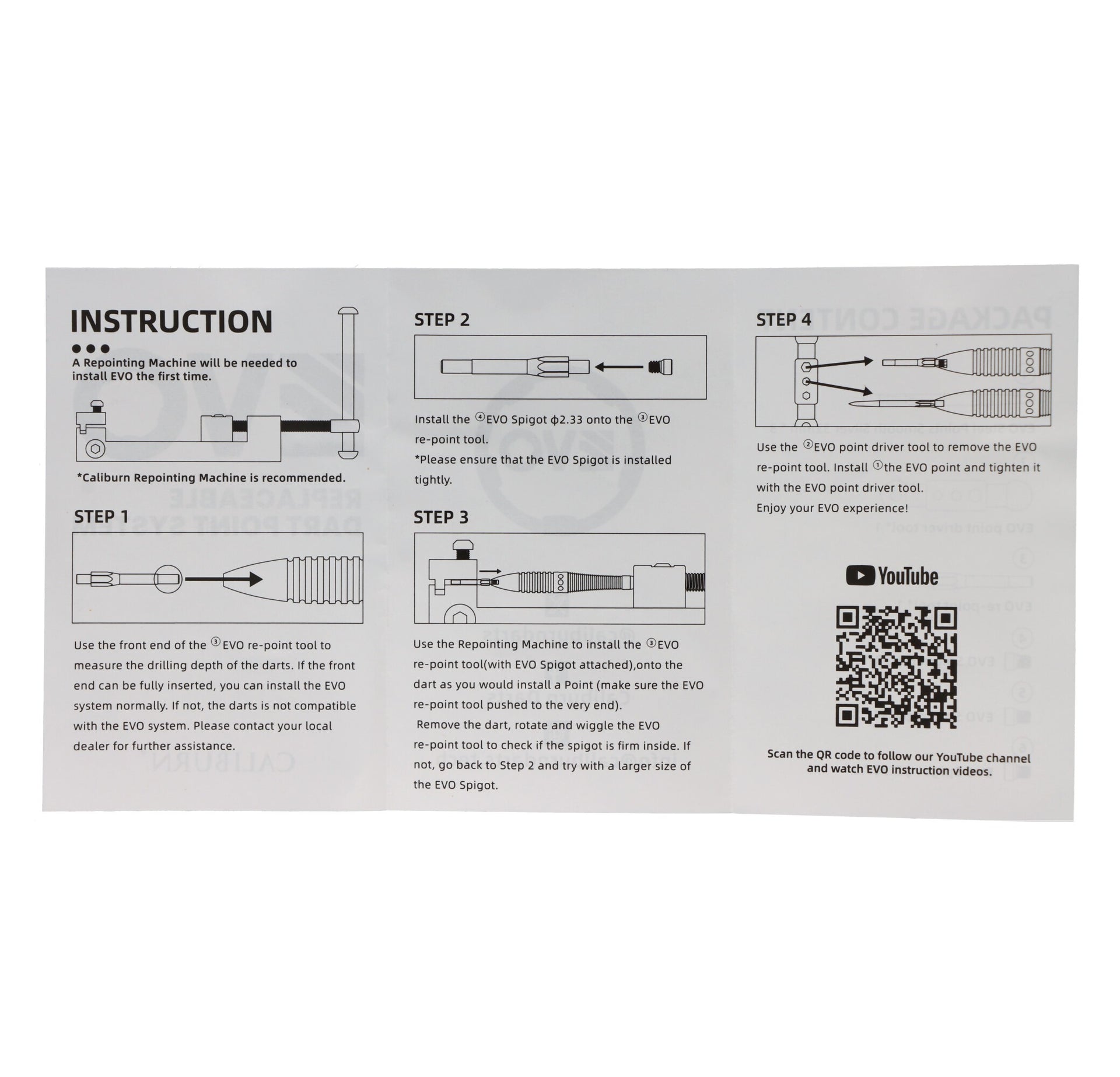 Caliburn EVO Points - Push Fit with Tool - Starter Kit. The revolutionary EVO points redefine the repointing process, making it effortless to change your points. This pack includes 1 set of 32mm Smooth Caliburn EVO points, 3 sets of spigots, a Point Driver Tool, and a Repoint Tool. Use the specially designed Point Driver Tool to secure the spigot into the barrel, then the Repoint Tool to fit and swap points with ease. Changing points has never been simpler! Now available in South Africa through Rebel Darts.