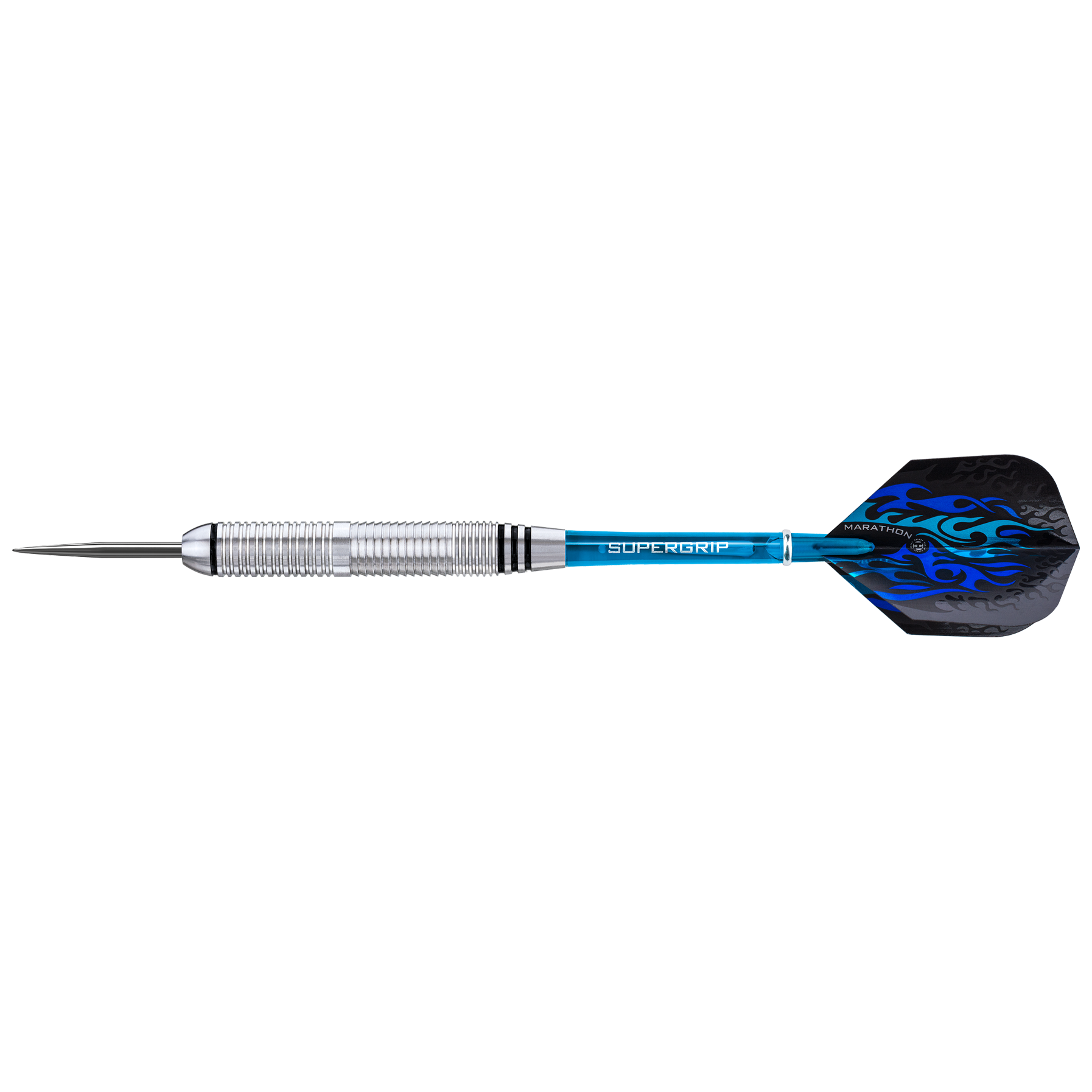 Blaze darts are precision engineered from Inox Steel, a high carbon, iron alloy. The sleek and stylish non-tarnish barrels feature a unique combination of horizontal and reverse cut micro-grooves, for ultimate control. Supergrip shafts and 100 micron Marathon flights provide aerodynamic perfection.